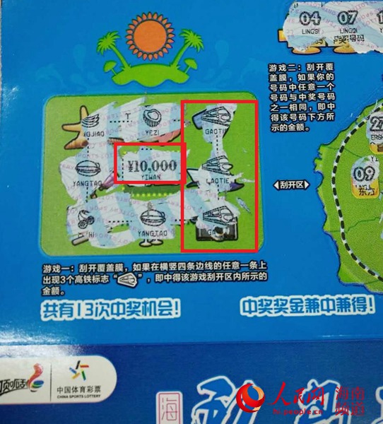 “環(huán)島高鐵”主題即開票3個1萬元頭獎中出