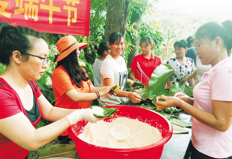 當(dāng)天,抱班村幫扶單位以及全體幫扶責(zé)任人集資舉辦以“我的節(jié)日我快樂,扶貧路上你和我”為主題的端午節(jié)活動(dòng),幫扶單位代表、全體幫扶責(zé)任人及40戶建檔立卡貧困戶家庭成員等約200多人參加;顒(dòng)中,全體幫扶責(zé)任人與建檔立卡貧困戶相聚會(huì)餐、交流談心,鼓勵(lì)貧困戶積極面對困難。海南日報(bào)記者 武威 通訊員 林東 攝