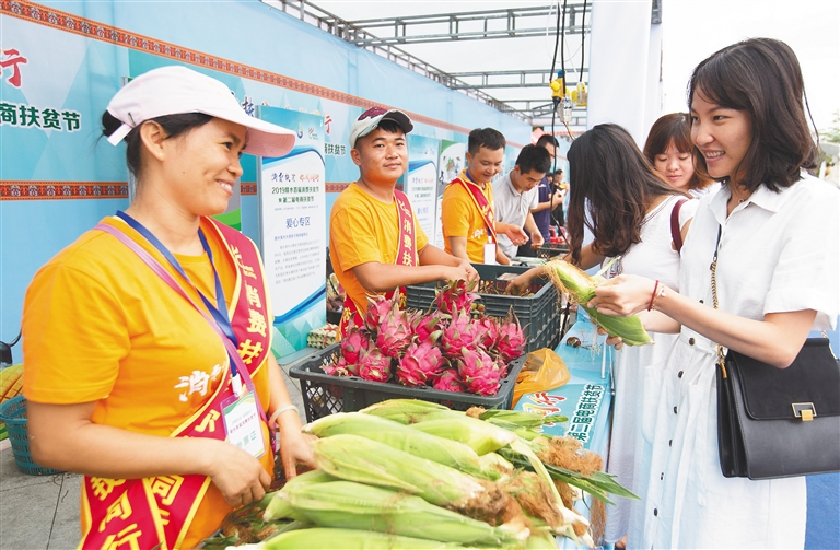 5月8日,陵水黎族自治縣首屆消費(fèi)扶貧節(jié)暨第二屆電商扶貧節(jié)開(kāi)幕,眾多陵水居民、游客前來(lái)選購(gòu)農(nóng)產(chǎn)品。據(jù)了解,該活動(dòng)旨在幫助貧困戶創(chuàng)建扶貧農(nóng)產(chǎn)品品牌,帶動(dòng)貧困戶脫貧;顒(dòng)為期4天,將舉辦愛(ài)心扶貧集市、扶貧農(nóng)產(chǎn)品采購(gòu)對(duì)接、陵水特色扶貧農(nóng)產(chǎn)品品牌推介、特色美食集市等活動(dòng)。
