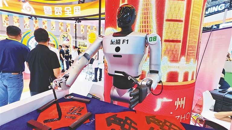 機(jī)器人在消博會上寫書法。 海南日報(bào)全媒體記者 陳元才 攝