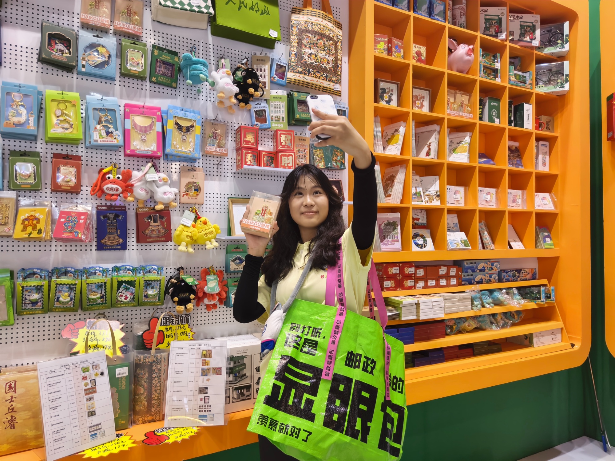 “今天過來消博郵局打卡很有意思,領(lǐng)到的‘顯眼包’特別好玩,既有郵政特色,又很實用,我要背著它逛消博會打卡留念!”來自海南大學的消博會志愿者李紫巖說道。平時就熱愛逛展拍照打卡的她,在消博郵局沉浸式體驗了蓋戳集章、手工定制明信片、趣味漫像繪制等特色活動,盡情地分享滿滿的打卡收獲。