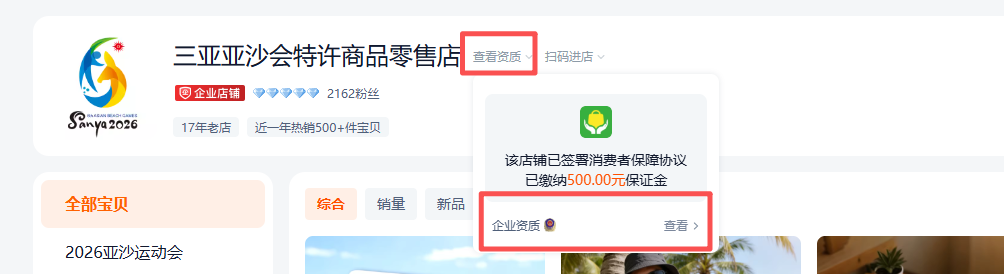 1.在對應(yīng)電商平臺進(jìn)入亞沙會特許商品目標(biāo)店鋪首頁;