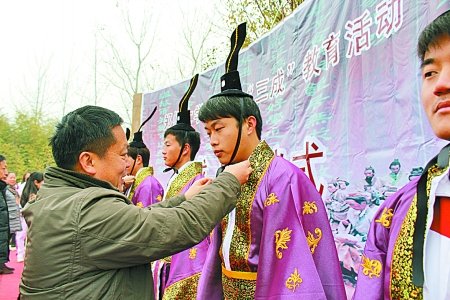 中广网河南分网消息 据大河报报道:“贺尔青年,今已成人,当以自主自立求己,自强厚载 ,任重弘远……”昨天,100余名郑州大学教育系大一新生参加了“成人、成才、成长” 的成人礼,他们身穿汉服跨过成年的门槛。