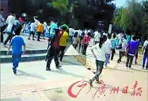 中广网河南分网消息 据广州日报报道: 昨日,微博上一则“学生哥火并”的视频引起网友的关注,微博称,上周五东莞东方明珠学校组织学生外出秋游,在广州乐翻天与佛山盐步中学学生发生冲突,随后秋游演变成群架事件,双方都有学生受伤,甚至称在追打过程中“有学生动用西瓜刀”。