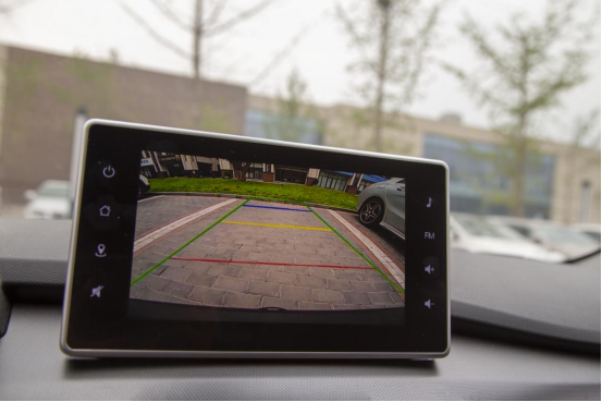 倒車攝像頭隱藏在牌照架的上方,在實(shí)際使用過(guò)程中倒車影像的信息顯示清晰無(wú)誤,停放區(qū)域的框架也十分準(zhǔn)確。