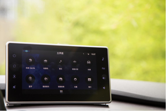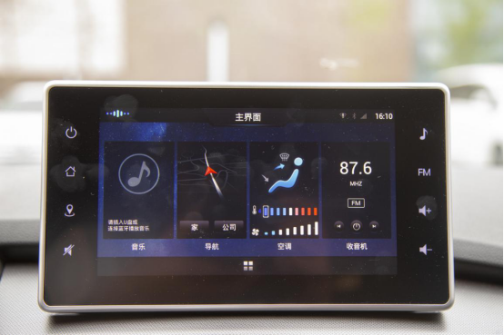 這塊8英寸的中控顯示屏觸感清晰、操作流暢,清晰度也非常的高,功能也十分強(qiáng)大。首先,它具有簡(jiǎn)介與全部?jī)煞N顯示模式。簡(jiǎn)潔模式下,我們可以直接從屏幕上進(jìn)行音樂(lè)、導(dǎo)航、空調(diào)、收音機(jī)的選擇使用。通過(guò)中央下方的按鍵便可以調(diào)出全部的功能選項(xiàng),包括常用的車載娛樂(lè)、車輛信息、電量信息、車輛設(shè)置等功能,非常方便。當(dāng)然,部分功能駕駛員還可以通過(guò)方向盤兩側(cè)的多功能按鍵進(jìn)行調(diào)節(jié)。