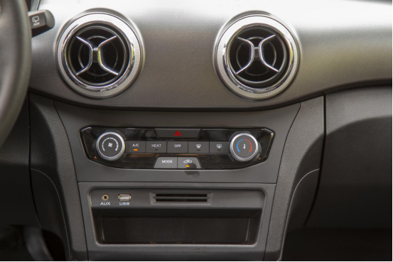 不得不說(shuō)的是,EC5這款車的實(shí)用性非常強(qiáng)大。帶PM2.5過(guò)濾功能的松下進(jìn)口原裝節(jié)能空調(diào)通過(guò)物理按鍵進(jìn)行控制,設(shè)計(jì)師在面板下方為駕乘人員準(zhǔn)備了AUX與USB接口,旁邊有兩張儲(chǔ)卡槽,下方則是一個(gè)體積更大的儲(chǔ)物空間,放置錢包、手機(jī)都沒(méi)有問(wèn)題。在下方,還有一個(gè)12V的點(diǎn)煙器接口。