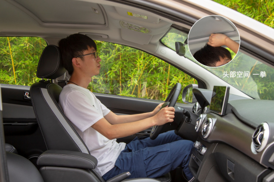 作為一款小型純電動(dòng)SUV,EC5的空間也是同級(jí)別車型中表現(xiàn)非常優(yōu)異的。身高180cm的測(cè)試者坐在車內(nèi),前排的頭部空間超過(guò)一拳,非常富裕。