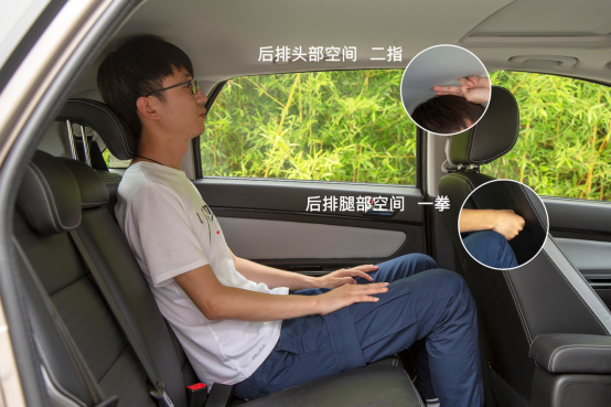 在前排座椅調(diào)整到舒適坐姿之后,測(cè)試者在后排的頭部空間也要超過(guò)兩指,腿部空間超過(guò)一拳,日常乘坐毫無(wú)問(wèn)題。后排中央的凸起高度很小,絲毫不影響中間乘客的腿部空間。