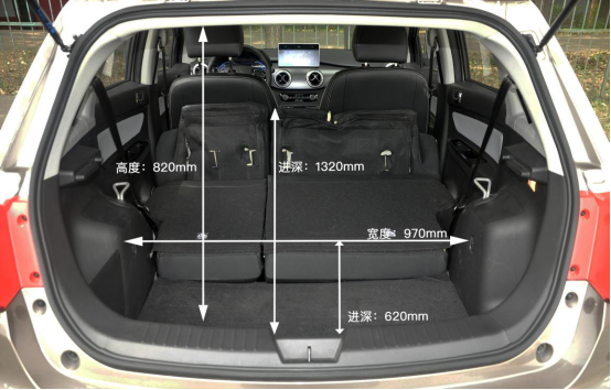 EC5的后備箱儲(chǔ)物空間也表現(xiàn)出同級(jí)別車型當(dāng)中少有的寬敞,后排座椅支持4/6比例放倒,進(jìn)深可以達(dá)到620-1320mm,后備箱寬度是970mm,高度是820mm,放置不規(guī)整的大件行李物品沒(méi)有任何問(wèn)題。