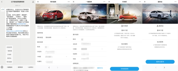 “北汽新能源智惠管家”微信公眾號在線服務(wù)功能