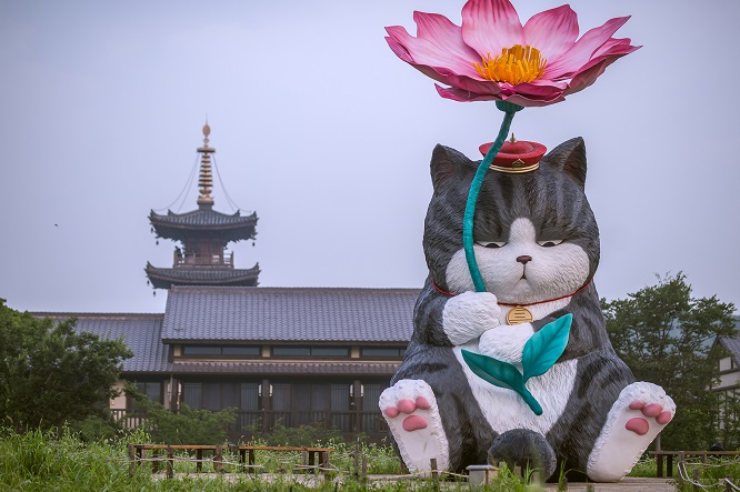 拈花灣自開園以來,就是華東地區(qū)的網(wǎng)紅小鎮(zhèn)。雖然主打禪意概念,卻在不斷推陳出新吸引市場的注意。今年夏天,拈花灣的重頭戲是與火爆全網(wǎng)的國民IP吾皇合作,打造的吾皇小鎮(zhèn)。據(jù)現(xiàn)場反饋,吾皇家族的主題展從入園到花海,都十分生動有趣,尤其是花海中的8米高吾皇,更是游客爭相拍照合影的景觀,也是夏季拈花灣的一大亮點(diǎn)。