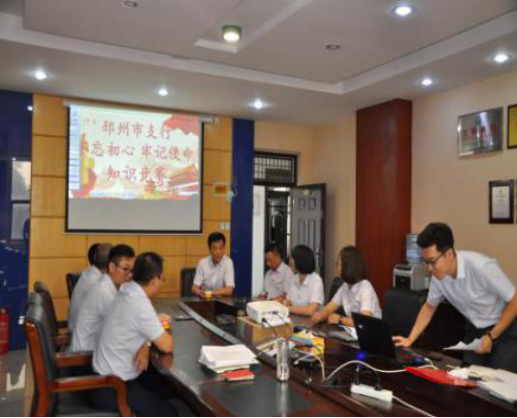 為踐行“不忘初心、牢記使命”主題教育,邳州支行舉辦了黨建知識競賽活動。大家充分學習理論知識,都做好了充足的準備,比賽現(xiàn)場如火如荼,知識儲備和搶答速度同時被考驗,最終會計結(jié)算部以一分險勝信貸業(yè)務(wù)部和辦公室。