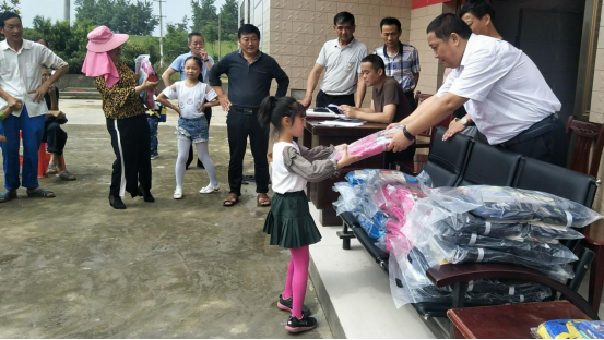 (圖為魏海峰同志為留守兒童發(fā)送慰問品)
