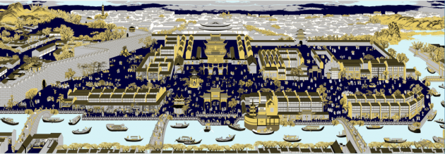 其中,金陵氣象主題主要以表現(xiàn)南京風(fēng)景為主。江南佳麗地,金陵帝王州。素有“六朝古都”“十朝都會(huì)”之稱的南京,居長(zhǎng)江中下游地區(qū),城中風(fēng)景優(yōu)美、人文薈萃。自古以來,金陵城的山水城林屢見于藝術(shù)家筆下,也是現(xiàn)代南京云錦創(chuàng)作的主題之一。