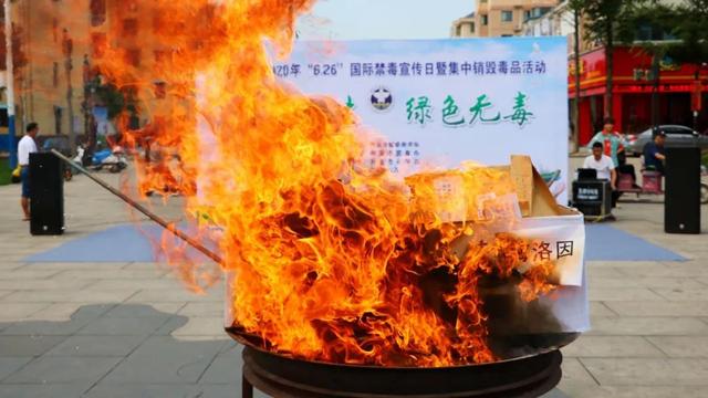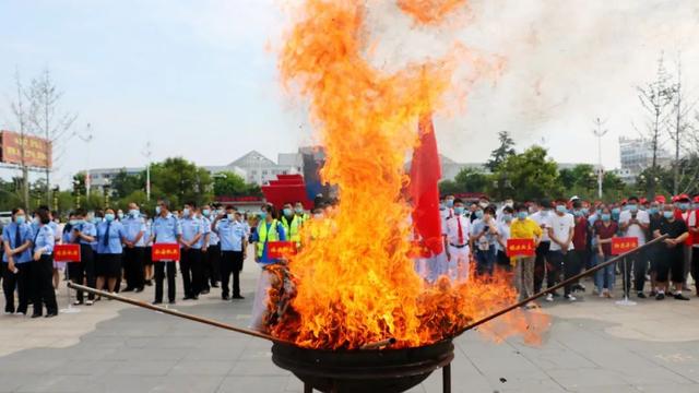 6月23日上午,界首市公安局在市政府廣場集中銷毀大量毒品。