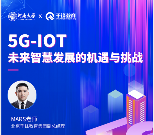 為了破解IT人才缺口問題,將專業(yè)的技術(shù)人才培養(yǎng)提上日程,6月21日,千鋒教育副總經(jīng)理MARS老師為河南大學2017級全學院開展線上技術(shù)講座《5G-IOT未來智慧發(fā)展的機遇與挑戰(zhàn)》,向高校普及5G、人工智能下的新基建未來發(fā)展趨勢以及人才需求走向,拉開了新基建大環(huán)境下高校人才培養(yǎng)的新序幕。