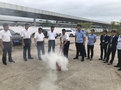 民警還會(huì)同車站職工舉行了一場(chǎng)消防應(yīng)急演練。民警結(jié)合多起火災(zāi)案例,仔細(xì)的向工作人員分析火災(zāi)的成因,并就如何排查隱患、撲救初期火災(zāi)、組織引導(dǎo)人員疏散、開展消防宣傳進(jìn)行了全面的指導(dǎo)。隨后,民警現(xiàn)場(chǎng)指導(dǎo)車站工作人員開展模擬演練。演練模擬場(chǎng)景為車站停車場(chǎng)突燃大火!熬椤卑l(fā)生后,車站工作人員立即按照民警的前期指導(dǎo),手持干粉滅火器檢查完壓力表后,拔掉保險(xiǎn)銷,右手用力壓下壓把,左手拿著噴管,站在上風(fēng)方向,對(duì)準(zhǔn)火焰根部噴射,直至把火全部熄滅。