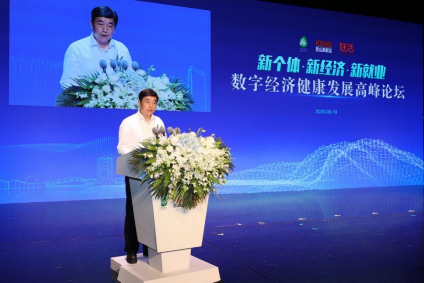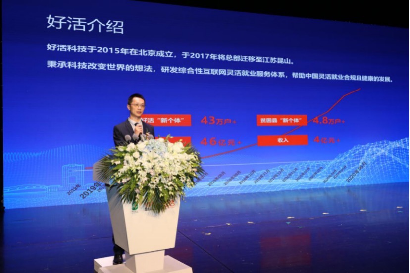 2020年9月19日,新個(gè)體·新經(jīng)濟(jì)·新就業(yè)數(shù)字經(jīng)濟(jì)健康發(fā)展高峰論壇在昆山當(dāng)代昆劇院舉行。國(guó)家市場(chǎng)監(jiān)督管理總局登記注冊(cè)局局長(zhǎng)楊紅燦,昆山市委副書(shū)記、市長(zhǎng)周旭東,市領(lǐng)導(dǎo)管鳳良、岳曉楠,教育部“長(zhǎng)江學(xué)者”特聘教授、中國(guó)人民大學(xué)中國(guó)就業(yè)研究所所長(zhǎng)曾湘泉,首都經(jīng)濟(jì)貿(mào)易大學(xué)中國(guó)新就業(yè)形態(tài)研究中心主任張成剛,中國(guó)互聯(lián)網(wǎng)協(xié)會(huì)副秘書(shū)長(zhǎng)宋茂恩,中物聯(lián)電子商務(wù)物流與快遞分會(huì)、中物聯(lián)同城即時(shí)物流分會(huì)秘書(shū)長(zhǎng)萬(wàn)瑩,中國(guó)人力資源社會(huì)保障理事會(huì)秘書(shū)長(zhǎng)李婕等專(zhuān)家學(xué)者和好活科技CEO朱江出席了本次論壇。