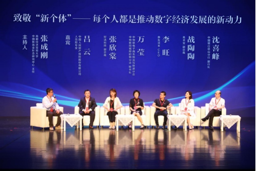 在大會(huì)的后階段,設(shè)立了主旨論壇環(huán)節(jié),論壇由首都經(jīng)濟(jì)貿(mào)易大學(xué)中國(guó)新就業(yè)形態(tài)研究中心主任張成剛主持,中物聯(lián)電子商務(wù)物流與快遞分會(huì)、中物聯(lián)同城即時(shí)物流分會(huì)秘書(shū)長(zhǎng)萬(wàn)瑩,惠友資本CEO李旺,好活科技副總裁張欣棠,美術(shù)寶副總裁戰(zhàn)陶陶,中國(guó)人民財(cái)產(chǎn)保險(xiǎn)股份有限公司人員險(xiǎn)專(zhuān)家呂云,中國(guó)銀行昆山分行副行長(zhǎng)沈喜峰參加論壇,圍繞“致敬‘新個(gè)體’——每個(gè)人都是推動(dòng)數(shù)字經(jīng)濟(jì)發(fā)展的新動(dòng)力”主題,從不同領(lǐng)域共同探討數(shù)字經(jīng)濟(jì)推動(dòng)下的新經(jīng)濟(jì)、新個(gè)體、新就業(yè)發(fā)展的機(jī)遇與挑戰(zhàn)。