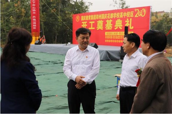 9月30日上午,鄭州國慶花都學(xué)校(高中部)在許昌鄢陵縣陳化店鎮(zhèn)隆重舉行開工奠基儀式并有鄢陵縣委副書記韓宏濤、鄢陵縣副縣長靳喜民、縣教體局副局長張耀輝、等領(lǐng)導(dǎo)參加了本次儀式。參加本次儀式的還有鄢陵縣發(fā)改委、財(cái)政局、自然資源局、招商局、住建局、人社局、文廣和旅游局、人防辦等單位負(fù)責(zé)人,陳化店鎮(zhèn)黨委書記常浩,陳化店鎮(zhèn)鎮(zhèn)長溫建輝及相關(guān)負(fù)責(zé)同志。河南省省直文聯(lián)主席:殷江林、河南省省直攝影家協(xié)會副主席:邢中國、河南國慶教育集團(tuán)董事長:徐惠娟、河南國慶教育集團(tuán)聯(lián)合創(chuàng)始人、中原基礎(chǔ)教育研究院院長:鄒越、鄭州國慶花都學(xué)校校長:石志剛。
