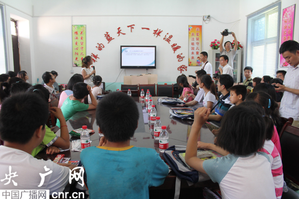 央廣網河南分網消息 “叔叔,這臺電腦能不能讓媽媽輔導我學習。俊薄拔蚁胱屧趶V州打工的爸爸和我下象棋!” 6月28日下午,河南省通許縣長智鎮(zhèn)第一初級中學的留守兒童愛心家園里熱鬧非凡,孩子們的問題一個接著一個,讓孩子們感到特別興奮的是第一次非常清晰地見到了遠在外地打工的父母,非常清晰地聽到了父母的聲音,這無疑是他們感到最幸福的事了。