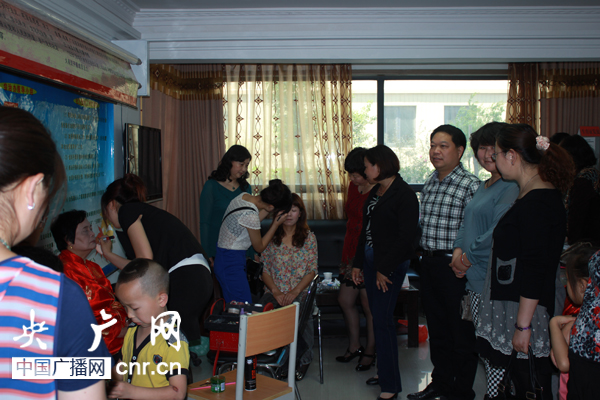 5月13日一大早,社區(qū)居民就紛紛趕來挑選衣服、化妝拍攝照片,歡度母親節(jié)。