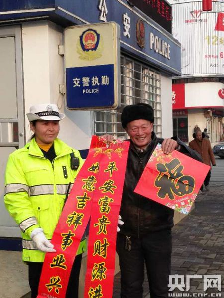 1月18日,西峽交警大隊(duì)紫金崗?fù)っ窬瘞е喾鶎?duì)聯(lián)以及交通安全宣傳彩頁(yè)在白羽路附近展開(kāi)了送春聯(lián)活動(dòng)。