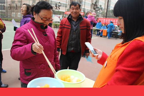 項(xiàng)目組結(jié)合前期入戶調(diào)研結(jié)果,以及軍工群體本身的特點(diǎn),設(shè)置本次運(yùn)動(dòng)會(huì)的主題項(xiàng)目,共九項(xiàng):項(xiàng)目宣傳-有獎(jiǎng)競猜區(qū)、“趣味大挪移”、“跳跳球”、“同色魔方”、“盲人擊鼓”、“托球奔跑”、“趕豬進(jìn)欄”、手工展示區(qū)-“幸福墻”、以及醫(yī)務(wù)區(qū)。參與者首先領(lǐng)取參加本次活動(dòng)的“參與券”,然后進(jìn)入項(xiàng)目宣傳-有獎(jiǎng)競猜區(qū),了解本次活動(dòng)的主辦方及其他相關(guān)信息,接著就可以自愿參與到每項(xiàng)游戲中,每通過一關(guān)就可以獲得2枚印花,最終獲得印花數(shù)多者即可獲得獎(jiǎng)品一份。網(wǎng)球場上不時(shí)傳來陣陣笑聲,有的在蒙眼擊鼓,有的在認(rèn)真的擲球,有的則在快速奔跑……正如軍工們留在“幸福墻”上面的一句句話:“祝愿祖國早日實(shí)現(xiàn)中國夢(mèng)”、“祝愿社工活動(dòng)越辦越好”、“全民動(dòng)員,鍛煉身體”等,無不彰顯著來自軍工群體的別樣風(fēng)采。