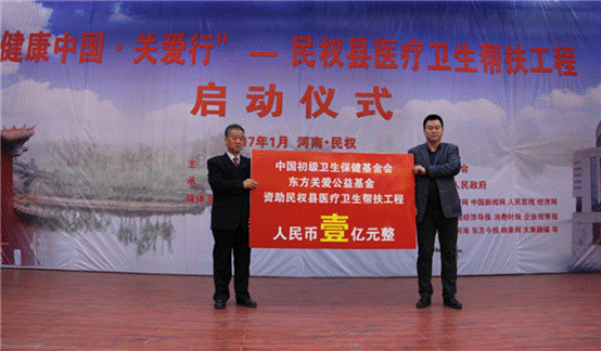 “健康中國(guó)?關(guān)愛行”—民權(quán)縣醫(yī)療衛(wèi)生幫扶工程,將在兩年時(shí)間內(nèi),在民權(quán)縣,通過疾病篩查、患者資助、醫(yī)務(wù)人員培訓(xùn)、醫(yī)療設(shè)備捐贈(zèng)及醫(yī)療衛(wèi)生基礎(chǔ)設(shè)施捐建等公益活動(dòng),多模塊、多形式相結(jié)合展開對(duì)民權(quán)縣醫(yī)療衛(wèi)生領(lǐng)域的幫扶,最大程度改善和提高當(dāng)?shù)氐尼t(yī)療衛(wèi)生服務(wù)能力。該活動(dòng)是中國(guó)初級(jí)衛(wèi)生保健基金會(huì)在河南省針對(duì)地方縣域啟動(dòng)醫(yī)療衛(wèi)生領(lǐng)域的全面幫扶,標(biāo)志著中國(guó)初級(jí)衛(wèi)生保健基金會(huì)助推“健康中原”建設(shè)的公益活動(dòng)將在河南省陸續(xù)全面展開。