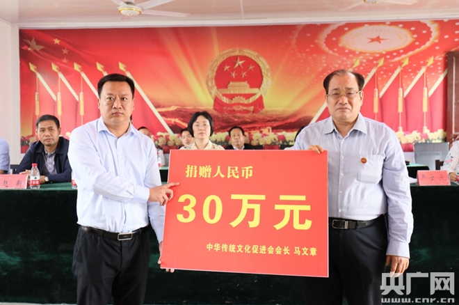 央廣網河南分網5月13日消息 5月11日,周口市劉灣鎮(zhèn)舉行“助力脫貧攻堅慈善捐款”活動,中華傳統(tǒng)文化國際交流聯(lián)合會主席、河南省政協(xié)常委、河南省慈善總會副會長、河南省傳統(tǒng)文化促進會會長馬文章出席,并現(xiàn)場捐款30萬元,助力家鄉(xiāng)精準扶貧工作。