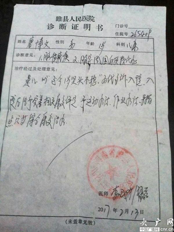 對此,本網(wǎng)也呼吁社會愛心人士及廣大網(wǎng)友伸出援手,獻出自己的點滴愛心,讓年幼無辜的孩子唐博文得到社會的關(guān)愛,早日擺脫病魔,走向本該美好的人生!