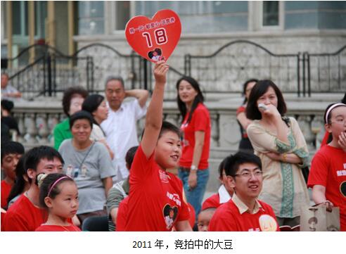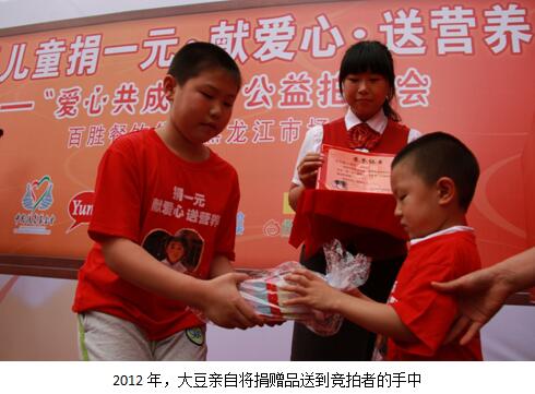 “大豆”大名尹鵬鶴2009年,剛上小學一年級的他第一次參加了黑龍江肯德基舉辦的“捐一元.獻愛心.送營養(yǎng),愛心義賣會”,那時的他,根本不懂什么是“公益”,甚至沒搞明白要去干什么,就覺得拍賣可能挺好玩兒的,當媽媽動員他捐出一件“拍品”的時候,他猶豫了,反復地比對之后,他挑了自己不喜歡的幾個筆記本捐出去當“拍品”。他說“那時候根本不理解‘貧窮’是怎么回事,更難以想象會有同齡的孩子因為貧困吃不上飯,也想象不到拍這些物品花的錢能給山區(qū)的孩子帶來什么營養(yǎng)。那一年我只是記住了,一元錢可以幫助一位同齡的小伙伴早餐吃上一個雞蛋、一杯牛奶的營養(yǎng)餐……”
