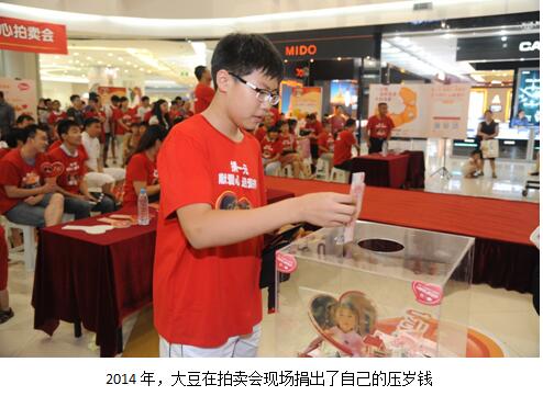 從身高不足一米二的“熊孩子”到一米八的陽光大男孩,無論如何改變,不變的是他對小小公益活動的堅持。談起未來的計劃“大豆”說:“‘捐一元’帶我走進了公益的大門,我和“捐一元”互相陪伴,一起成長,他給了我一份珍貴的童年記憶,希望他能夠一直陪著我,一起上高中,讀大學……”