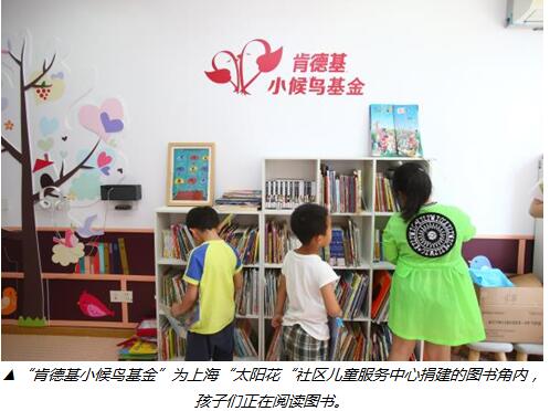 “肯德基小候鳥(niǎo)基金”成立第一年內(nèi),通過(guò)為留守兒童、流動(dòng)兒童聚集社區(qū)捐建肯德基“小候鳥(niǎo)”圖書(shū)角;利用肯德基在全國(guó)餐廳開(kāi)展的兒童故事會(huì)中特別開(kāi)設(shè)“小候鳥(niǎo)”專(zhuān)場(chǎng)活動(dòng);以及寒假、六一等時(shí)段的豐富活動(dòng),首年計(jì)劃惠及約60萬(wàn)“小候鳥(niǎo)”兒童。目前,肯德基小候鳥(niǎo)基金已在全國(guó)建成了一千余個(gè)小候鳥(niǎo)圖書(shū)角,圖書(shū)角的選址以中國(guó)兒童少年基金會(huì)關(guān)愛(ài)留守兒童的兒童快樂(lè)家園為基礎(chǔ),同時(shí)將更多留守兒童、流動(dòng)兒童聚居的社區(qū)和學(xué)校納入捐助體系。小候鳥(niǎo)圖書(shū)角建成后,會(huì)定期收到肯德基小候鳥(niǎo)基金提供的優(yōu)質(zhì)兒童書(shū)籍和有聲書(shū)資源,借助多媒體為孩子們帶來(lái)多重閱讀體驗(yàn)。更有圖書(shū)角工作人員帶領(lǐng)孩子們舉辦閱讀相關(guān)活動(dòng),將閱讀陪伴活動(dòng)常態(tài)化。