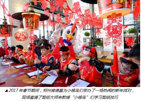 同時(shí),肯德基還充分利用遍布城鄉(xiāng)的肯德基餐廳網(wǎng)絡(luò),把餐廳變成給予孩子們溫暖關(guān)懷的心靈驛站。目前小候鳥(niǎo)基金已在全國(guó)四十余座大中小城市開(kāi)展了關(guān)愛(ài)小候鳥(niǎo)的專(zhuān)場(chǎng)活動(dòng),孩子們受邀來(lái)到就近的肯德基餐廳聽(tīng)故事姐姐講故事、做手工、看皮影戲、體驗(yàn)閱讀的魅力,感知文學(xué)、藝術(shù)和傳統(tǒng)之美。