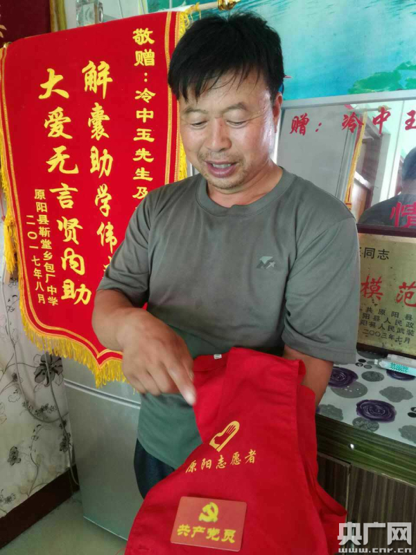 央廣網(wǎng)河南分網(wǎng)消息 “我也沒想到一個(gè)志愿者紅馬甲,讓我為九寨溝災(zāi)區(qū)親人找到了失聯(lián)了半個(gè)多世紀(jì)的家人!8月22日,當(dāng)記者見到從四川九寨溝災(zāi)區(qū)回來不久、被評為“中國好人”的原陽農(nóng)民冷中玉時(shí),他講述著他在抗震救災(zāi)一線的所見所聞所做,并講述了一個(gè)了意外的感人故事,一件由紅馬甲引發(fā)的“愛”的故事。