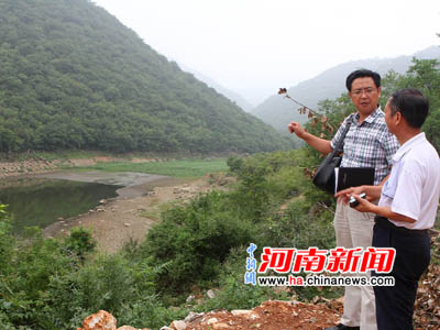 圖為崔晟利用課余休息時(shí)間,到桐柏縣大栗樹(shù)河考察河流狀況。