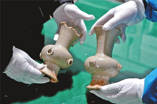 隋代漢白玉石棺床墓內出土的瓷瓶