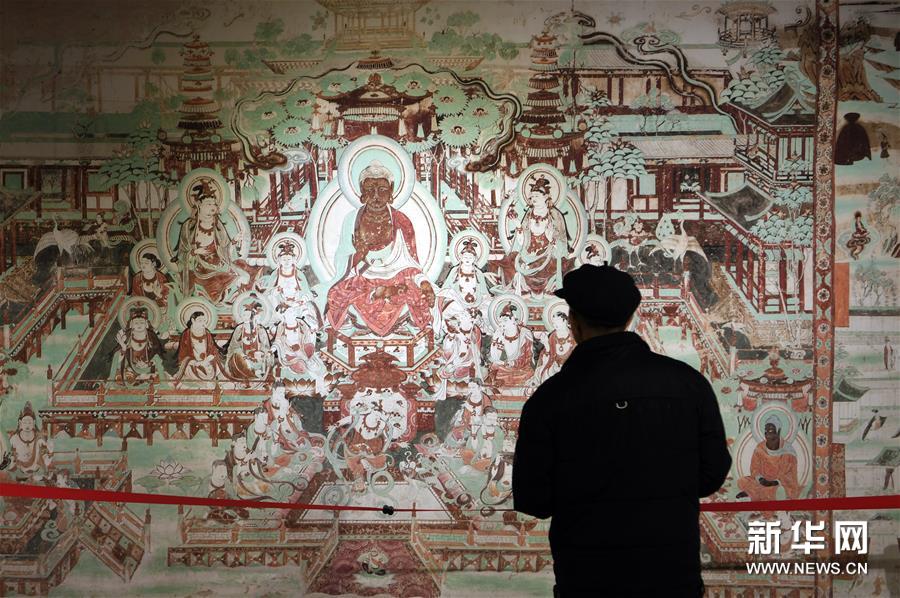 1月4日,參觀者在敦煌藝術(shù)館欣賞壁畫。