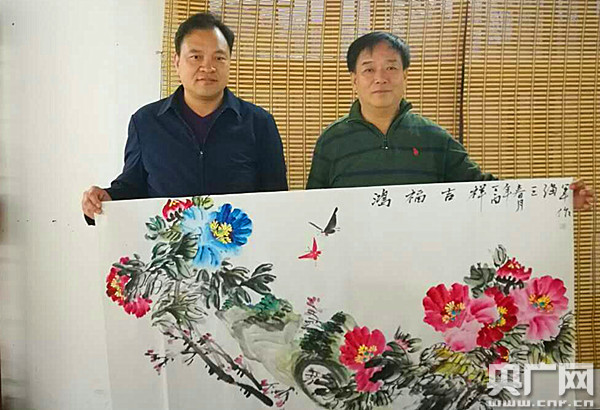 尚英照與王海軍及其牡丹國(guó)畫作品《鴻福吉祥》