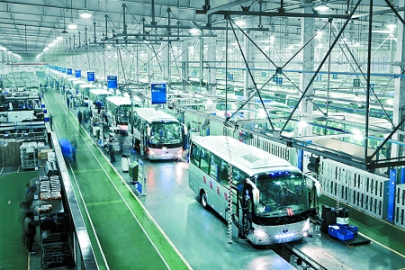 4月19日,現(xiàn)代化的宇通客車生產(chǎn)線正快速運(yùn)轉(zhuǎn)。今年一季度,鄭州宇通客車股份有限公司共銷售各類客車10168輛,成為行業(yè)內(nèi)唯一超過萬輛的企業(yè)。其中,共出口各類客車1531輛,出口額達(dá)到了10.12億元,出口量和出口額均名列行業(yè)第一。記者 王 錚 攝