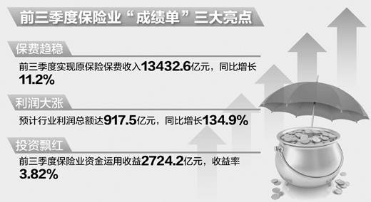 前三季保險業(yè)利潤總額預(yù)計增134.9%