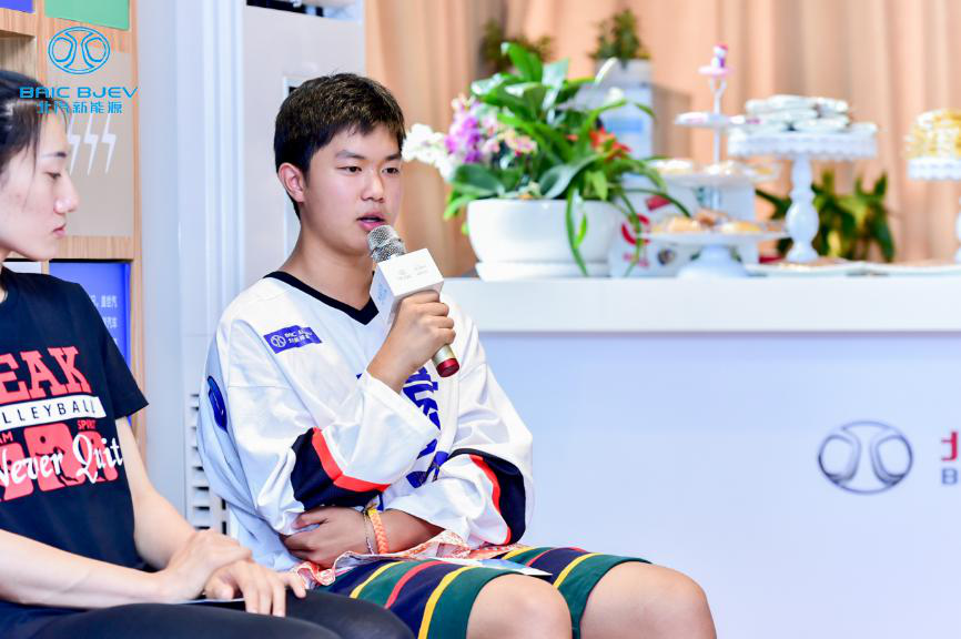 北汽新能源U18冰球隊(duì)的小運(yùn)動(dòng)員在沙龍環(huán)節(jié)中發(fā)言