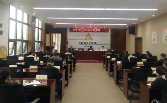為進一步拓展農(nóng)發(fā)行人征信知識的廣度和深度,農(nóng)發(fā)行畢節(jié)市分行于2019年7月9日舉辦了“征信知識進機關(guān)”主題講座,該行共四十余名員工參加了本次講座。