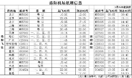洛陽開通新航線部分航班有調(diào)整