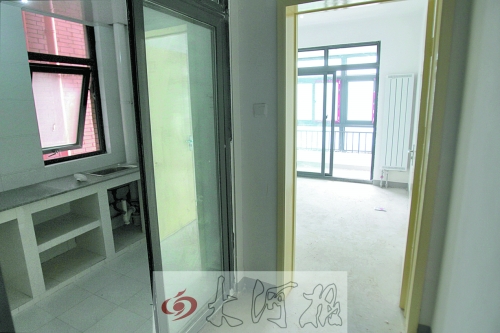 在這棟樓的21樓,工作人員隨便打開一個(gè)房間,是套兩室一廳,48平方米,衛(wèi)生間、臥室、廚房一應(yīng)俱全。廚房有操作臺(tái)、水龍頭;臥室有暖氣片;衛(wèi)生間還裝有坐便、梳洗池、墻上貼有瓷磚,還有吊頂、燈。臥室有一個(gè)小陽(yáng)臺(tái)。