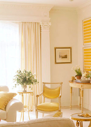 色彩的選取上以大塊的白色和黃色作為搭配,簡潔的色塊體現(xiàn)出了現(xiàn)代簡約風(fēng)格的特色。而家具的選擇上又兼具了現(xiàn)代與古典,精巧的邊幾和白色的沙發(fā)都體現(xiàn)了古典的韻味,是古典與現(xiàn)代結(jié)合的精品。