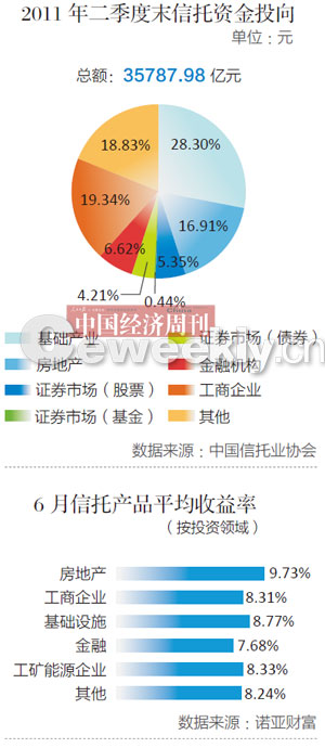 7月25日,銀監(jiān)會(huì)授權(quán)中國(guó)信托業(yè)協(xié)會(huì)發(fā)布的統(tǒng)計(jì)數(shù)據(jù)顯示,上半年投向房地產(chǎn)領(lǐng)域的信托資金余額為6051.91億元,比一季度末的4868.88億元大幅增長(zhǎng)24.3%。而二季度新增房地產(chǎn)信托資金累計(jì)達(dá)2077.66億元,比一季度末金額大幅增長(zhǎng)近兩倍。房地產(chǎn)信托平均年收益率依然居各領(lǐng)域之首。