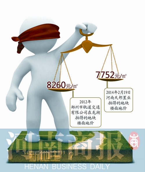 2月19日,河南天邦置業(yè)有限公司以7.9593億元的價(jià)格,摘得鄭政出〔2014〕18號地塊,溢價(jià)率240%,折合單價(jià)每畝地約為1550.4萬元,樓面地價(jià)約為7752元/平方米。該消息不僅引起鄭州市民高度關(guān)注,就連房地產(chǎn)業(yè)內(nèi)人士也直呼:“瘋了!”
